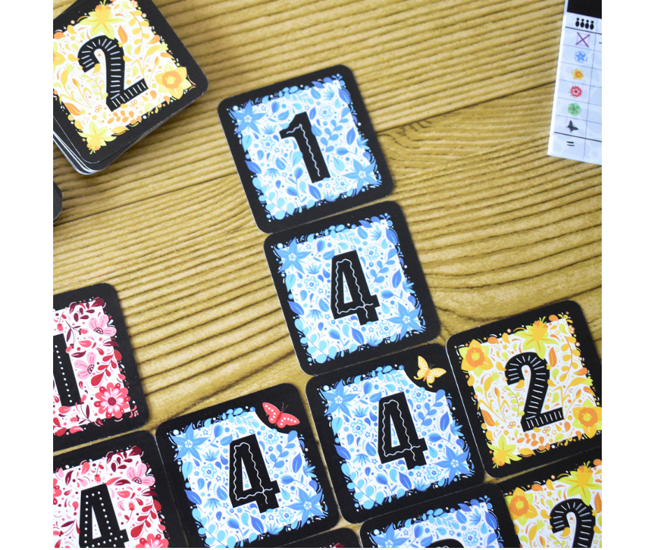 Con una baraja de 108 cartas de cuatro colores y valores del 1 al 4, cada carta que tomas y colocas debe cumplir estrictas reglas de colocación: los números deben agruparse exactamente según su valor, y los “1” no deben tocarse entre sí. Pero no todo es restricción: también sumarás puntos si logras crear grandes áreas de color y si colocas mariposas junto a flores del mismo tono.