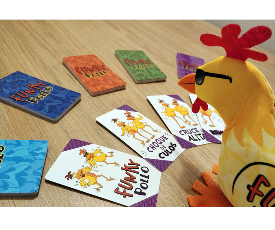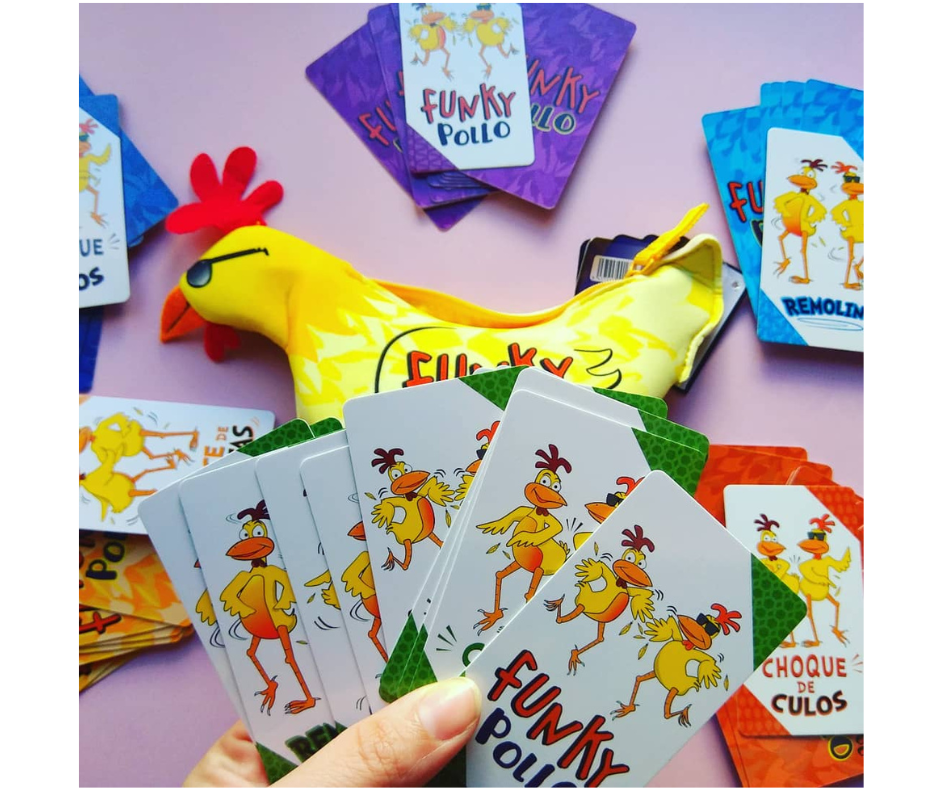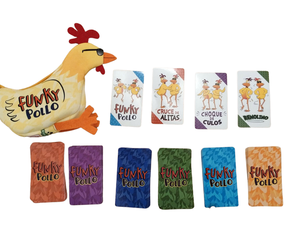 Funky Pollo es un juego de cartas simple y rápido que hace que todos se muevan y rían en menos de dos minutos. No hay turnos. Los jugadores gritan simultáneamente las acciones de baile y cuando dos jugadores coinciden, realizan el movimiento de baile juntos y descartan su carta. El primer jugador en descartar todas sus cartas gana.