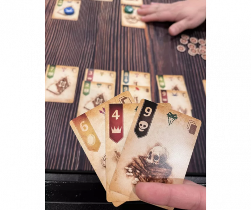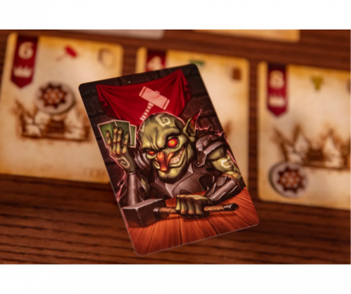 En los oscuros rincones de la prisión de Kulbak, lejos de las miradas indiscretas de los guardias, es probable que encuentres presos acurrucados, echando una partida de Goblin Vaults en secreto. Con su oro confiscado por la Alcaide Mercy, los reclusos encontraron una nueva forma de moneda: pequeños engranajes de metal robados de la herrería.