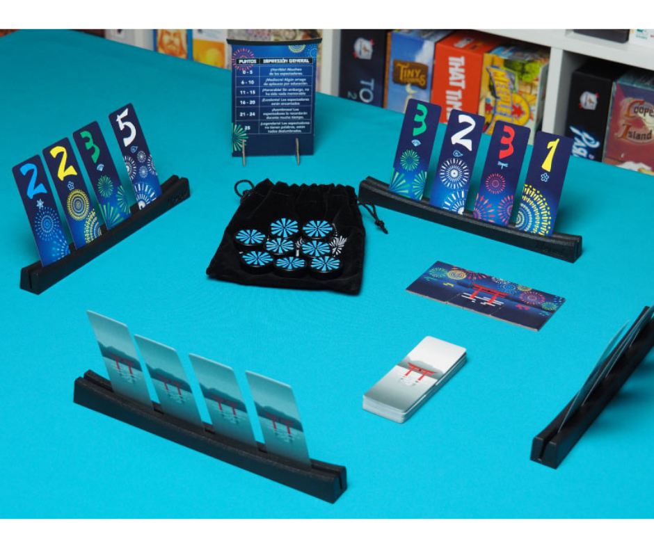 Un juego de mesa en el que nos convertiremos en auténticos pirotécnicos nipones. ¡Pero anden con ojo! Pues se ha levantado tal cantidad de humo que difícilmente veamos los cohetes que tenemos en nuestras manos, mientras que los de nuestros compañeros los veremos a las mil maravillas.