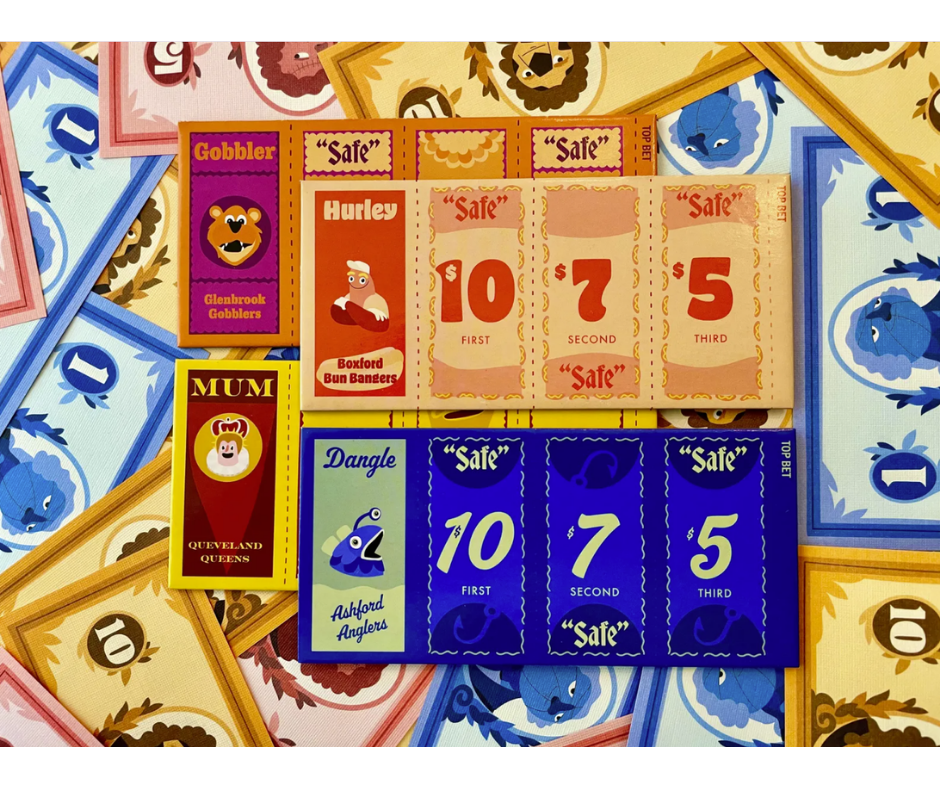Los boletos de apuesta te permiten ir a lo seguro o arriesgarte a perder dinero si tu mascota queda descalificada. Tienes que leer la mesa y adivinar a quién están apoyando los demás.