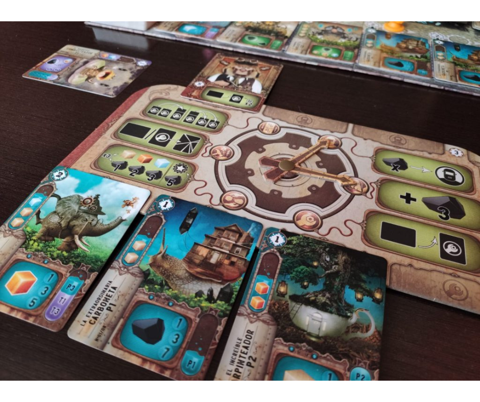 Antes de resolver esas dos acciones, los jugadores obtendrán recursos de las máquinas que tengan activas en su zona de juego, y podrán obtener una nueva máquina para reparar o, en su defecto, carbonium (uno de los cuatro tipos de recursos, concretamente el que funciona como combustible para muchas de las acciones). Para ello cada jugador dispondrá de un peón que colocará en un track cuyas posiciones tienen asociada una maquina o una cantidad de carbonium y que, además, determinará el orden de turno para la fase de acción.