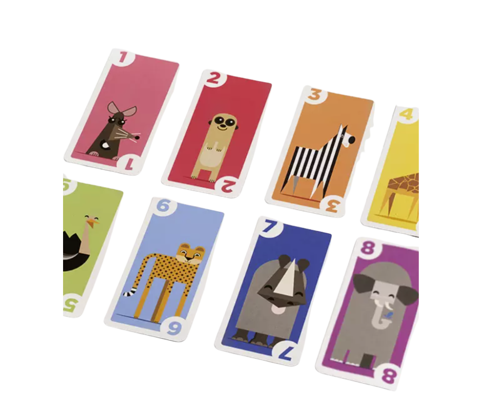 En tu turno, juegas una o más cartas del mismo animal, colocándolas en la posición correspondiente alrededor del lago (del 1 al 9, siendo el 1 el más pequeño, como el ratón, y el 9 el elefante).