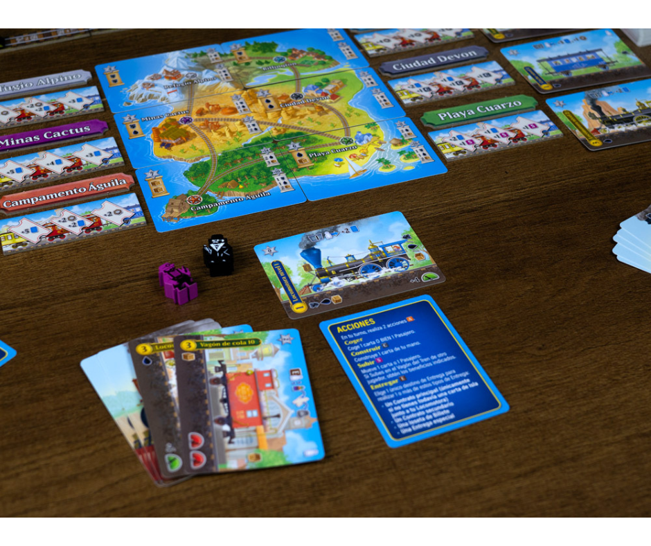 Un juego de construcción de motores basado en cartas donde las cartas tienen múltiples usos: puedes usarlas como locomotoras, vagones de carga, vagones de pasajeros o edificios para mejorar la efectividad y las habilidades de tu tren. Las tarjetas también se pueden gastar para pagar la construcción de nuevos vagones y edificios de tren, o puedes usar tus tarjetas como carga y cargarlas en los vagones de carga disponibles.