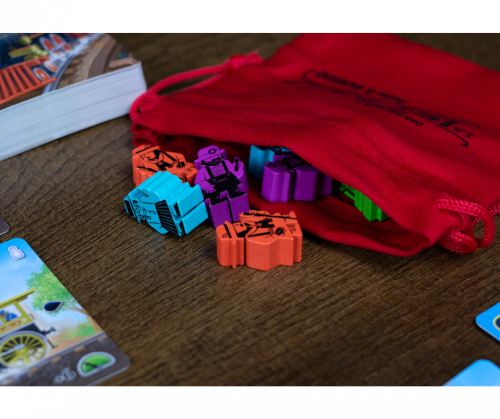También tendrás una variedad de pasajeros que querrán ser llevados a diferentes destinos. Sacarás a estos pasajeros al azar de una bolsa cuando construyas turismos y determinadas locomotoras. Luego puedes cargar pasajeros en cualquier automóvil de pasajeros disponible. Cuando los pasajeros sean entregados a sus destinos, ¡les darán un poderoso bono instantáneo!