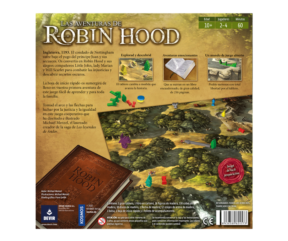 Las aventuras de Robin Hood es un juego de mesa en el que viviremos de primera mano las andanzas de este bondadoso ladrón de ricos y de sus amigos, explorando el bosque de Sherwood y la ciudad de Nottingham para resolver los múltiples desafíos que el libro de aventuras nos va a deparar.