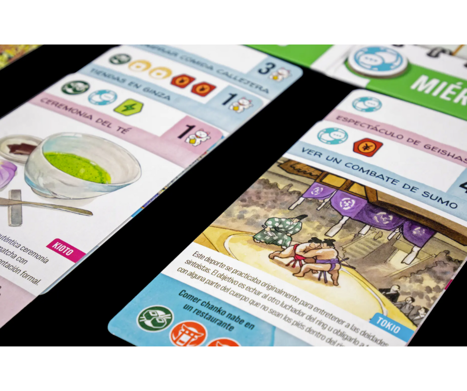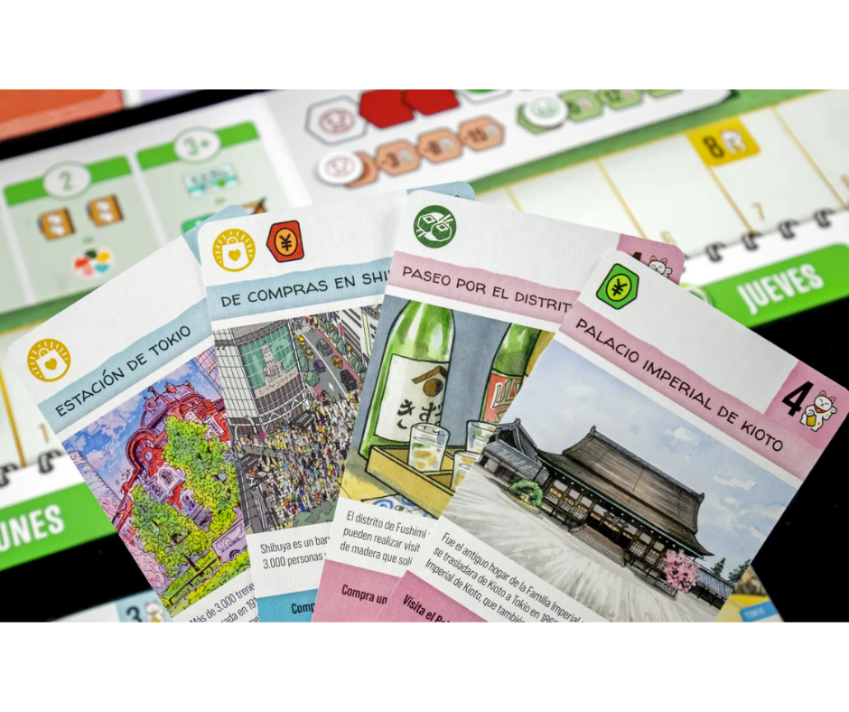 Con un total de 160 cartas bellamente ilustradas, este juego te permitirá planificar estratégicamente tus actividades diarias para maximizar tus experiencias y equilibrar tus recursos. ¿Visitarás el famoso Templo Kinkaku-ji en Kioto o te perderás en la vida nocturna de Shibuya en Tokio? Las decisiones están en tus manos.