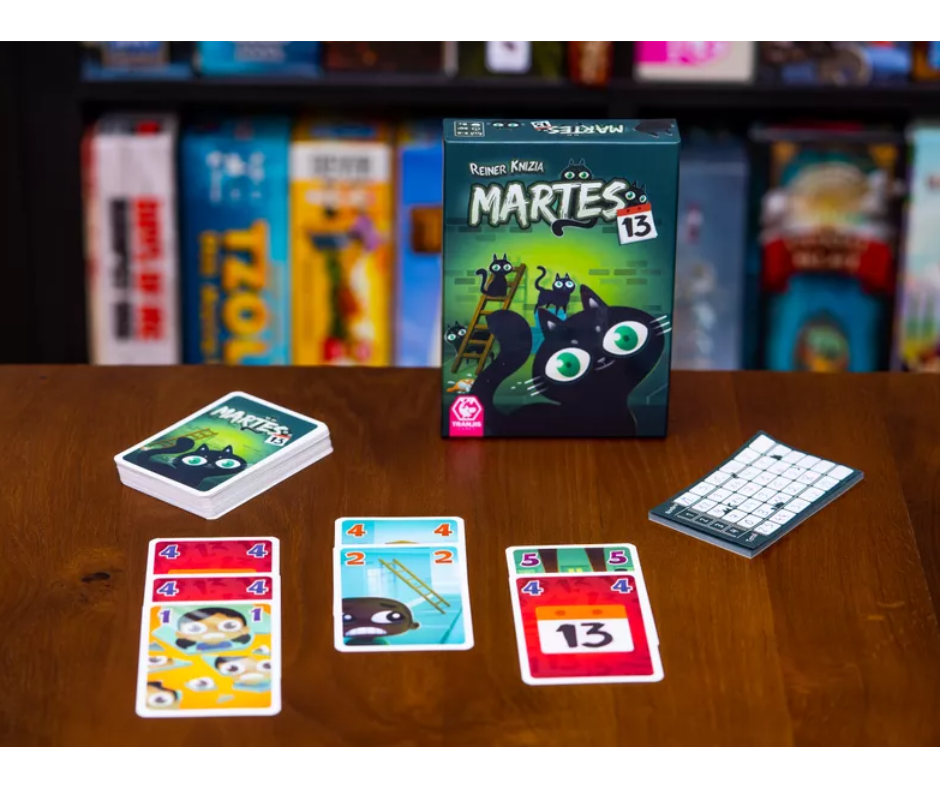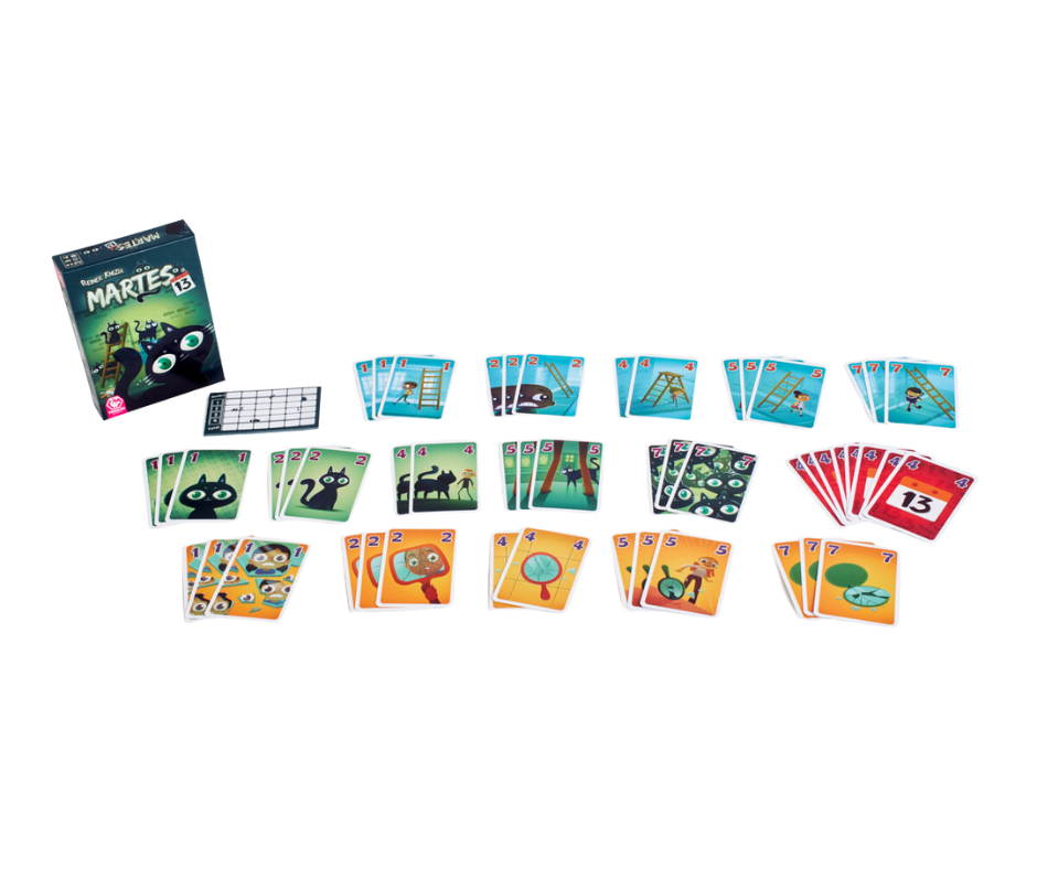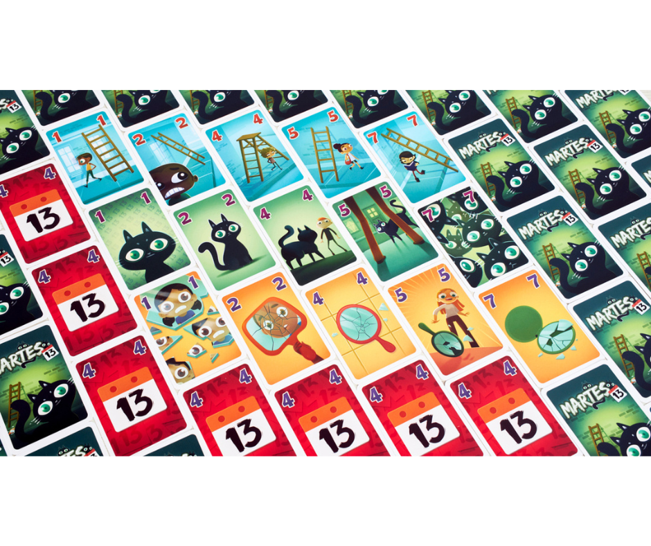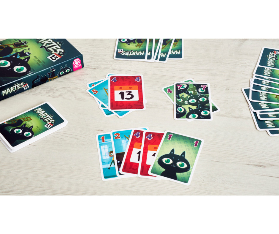 En Martes 13 trataremos de ahuyentar la mala suerte intentando coger el mínimo de cartas posibles del área central de juego. Cuantas más cartas tengamos enfrente al terminar la ronda, mayor será nuestro acumulado de puntos y más nos perjudicará.