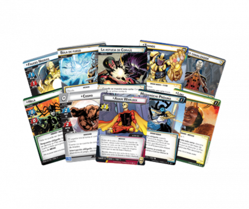 Esta caja incluye 268 cartas con las que vivirás una campaña épica a través de cinco escenarios conectados, enfrentando a los temibles miembros de la Orden Negra —Ebony Maw, Proxima Midnight, Corvus Glaive y más—, hasta llegar al enfrentamiento final contra el mismísimo Titán Loco portando el Guantelete del Infinito.
