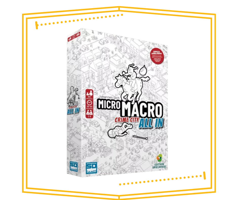 MicroMacro Crime City: All In es un juego de tablero en el que tendrás que resolver diferentes casos que atraerán la atención de la ciudad MicroMacro. Pon toda tu atención y utiliza toda tu perspicacia para buscar las pistas que desarrollarán un total de 16 casos distintos. Resuélvelos y vence en All In.