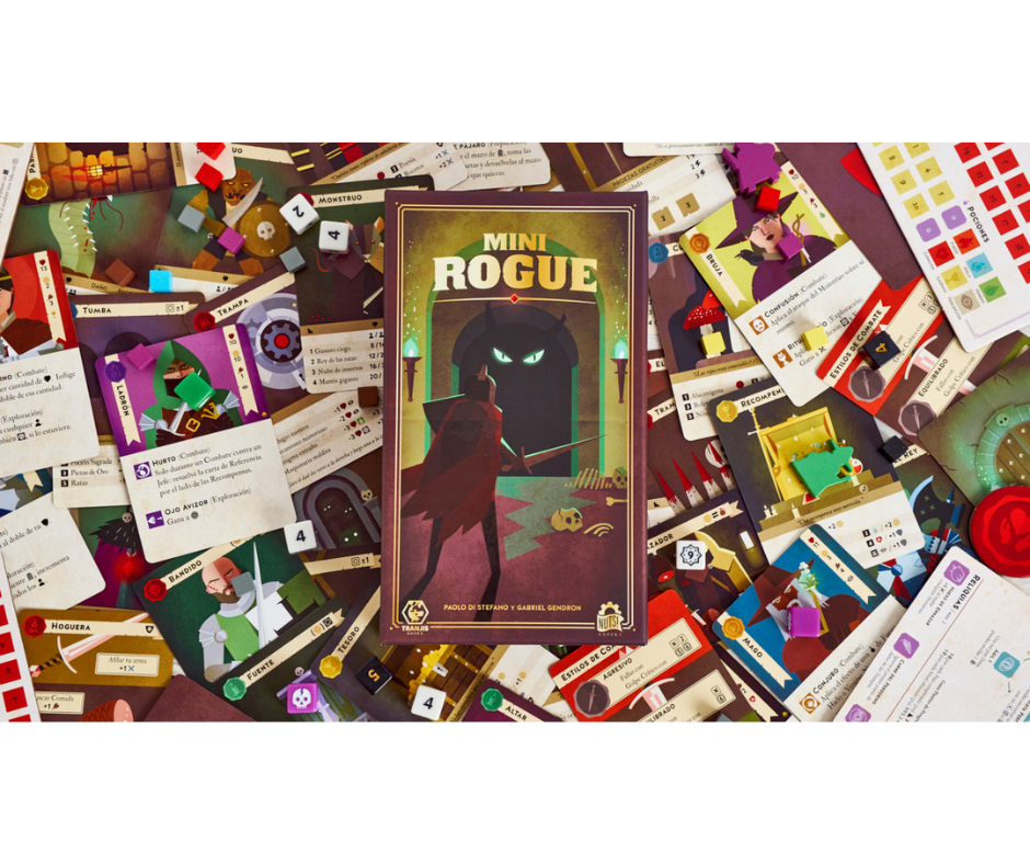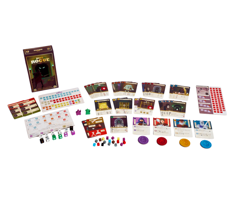Mini Rogue es un juego solitario (con modo para 2 personas) que traslada la experiencia de los videojuegos roguelike a la mesa. Nuestro objetivo será avanzar por distintos niveles de una mazmorra, cada uno generado aleatoriamente a partir de un conjunto de posibles habitaciones, hasta llegar al final y derrotar al jefe de la mazmorra.