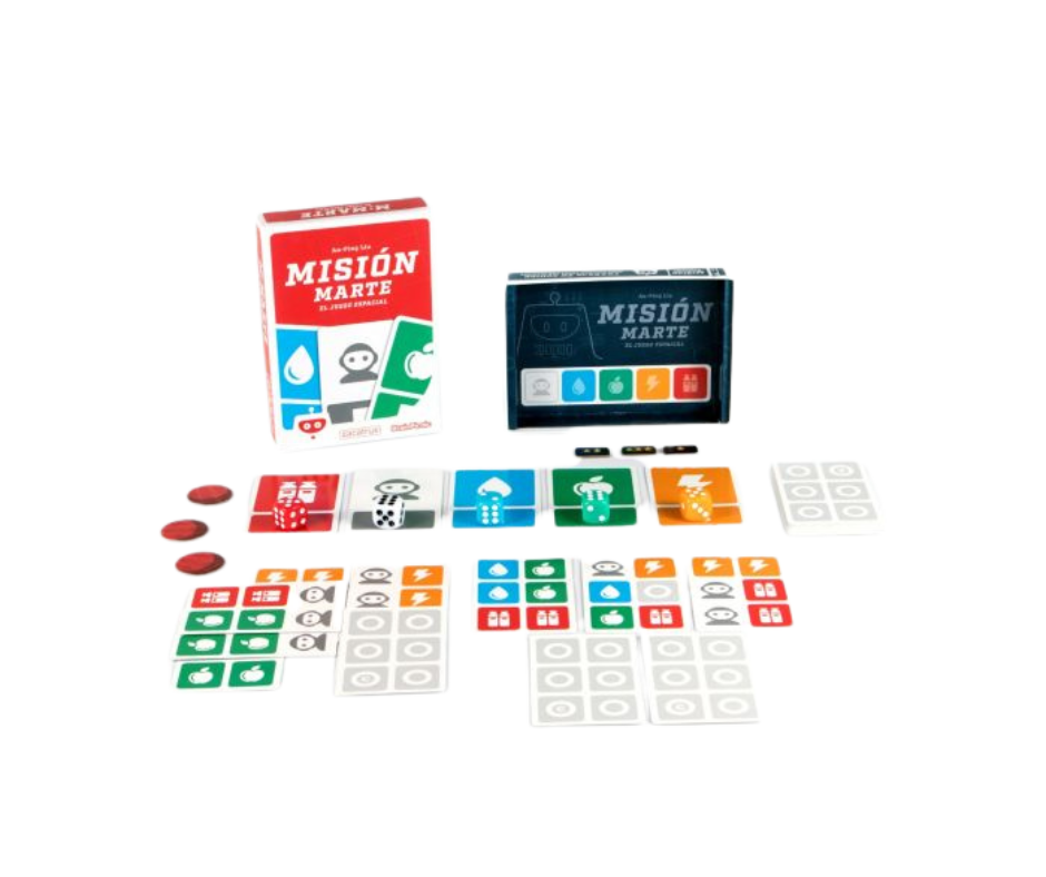 Misión Marte es un juego de mesa que te transporta al planeta rojo. Ha llegado el gran momento de terraformar Marte y hay que equipar la nave con todos los recursos necesarios para cumplir la misión: TRIPULACIÓN, AGUA, COMIDA, ENERGÍA y OXÍGENO.