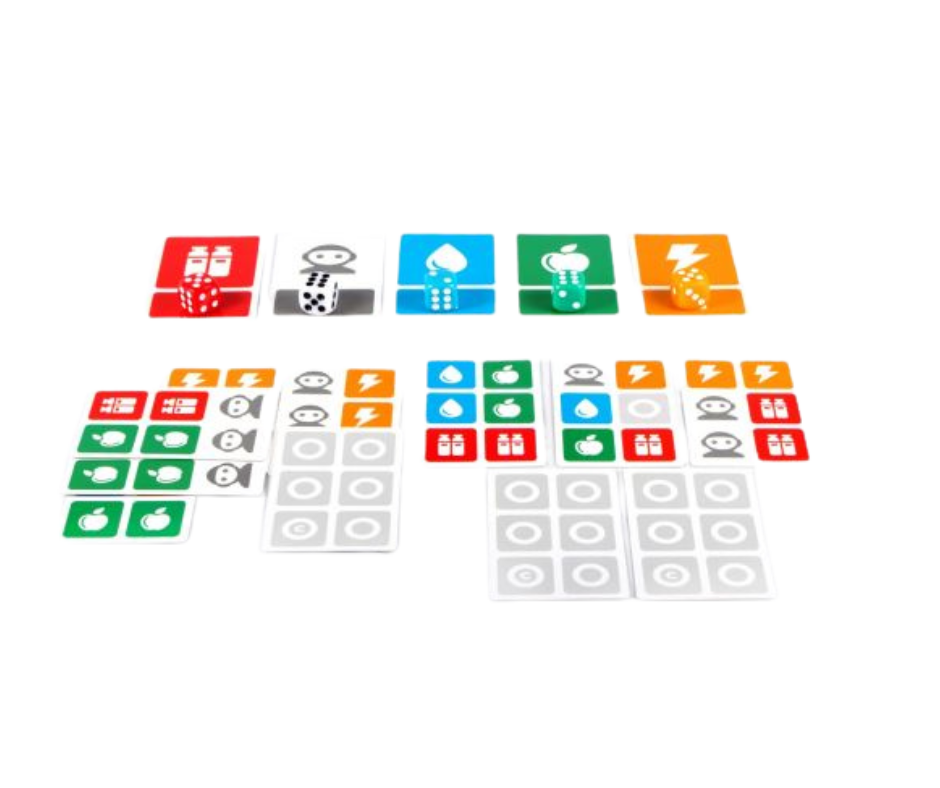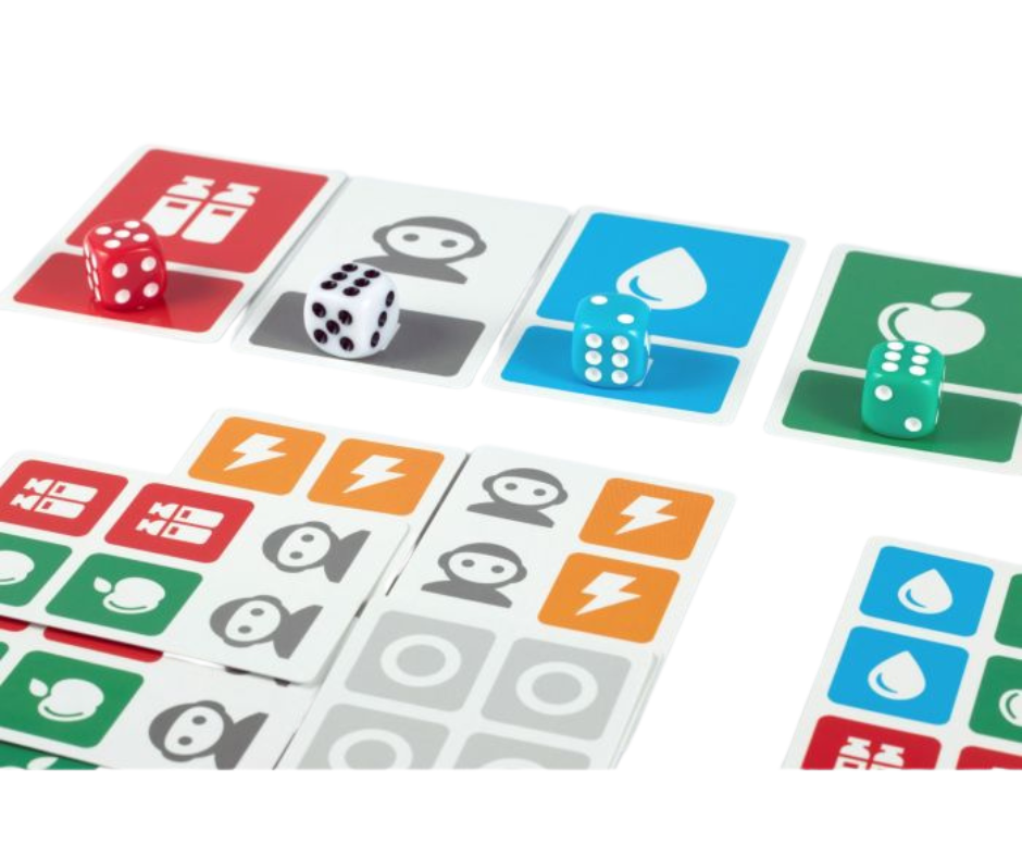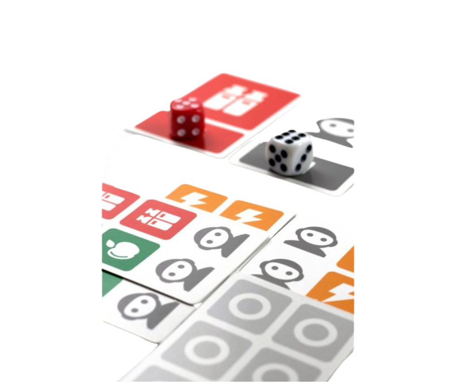 Lanza los dados e intentad colocar las cartas de manera que se cumpla lo que se indica en cada uno de los dados de colores y finalizar la misión. ¿Cuántos astronautas deben quedar a la vista? Y, ¿agua?, ¿energía?. Controla bien todos los elementos que necesitas en cada misión y ¡conquista Marte!