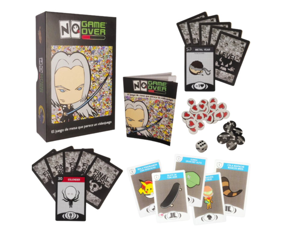 No Game Over es un juego inspirado en el mundo de los videojuegos, para tener partidas divertidas y rápidas. Es realmente fácil aprender a jugar y es fácil empezar a molestar a tus oponentes (el objetivo principal del juego).