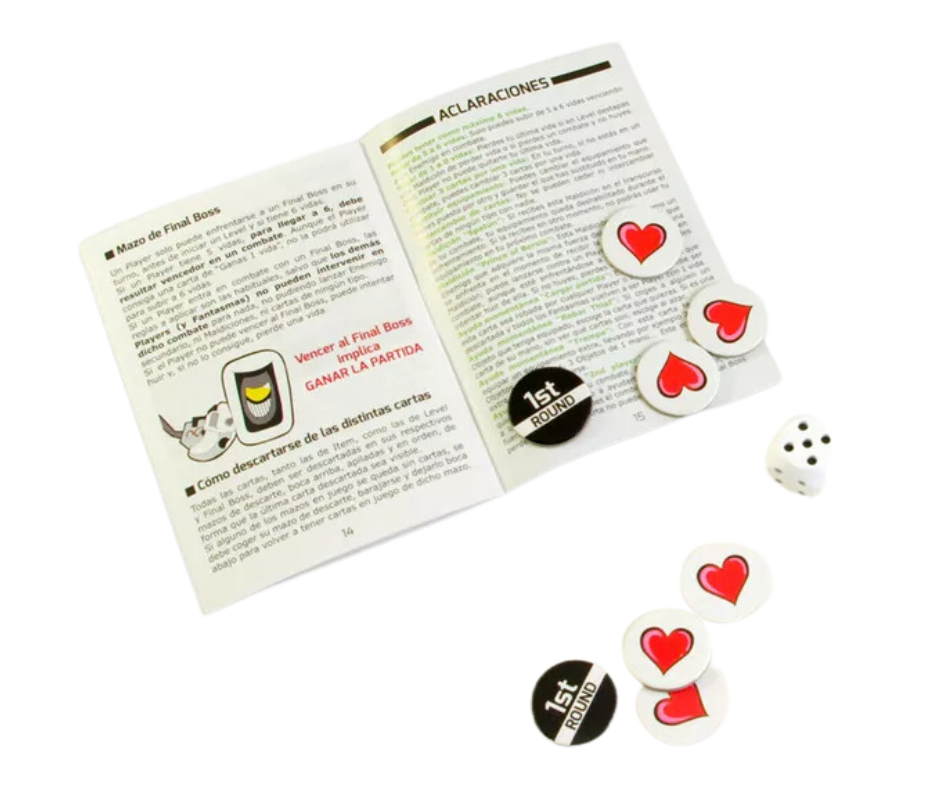 1 plancha de fichas troqueladas: 36 corazones y 6 indicadores First Round