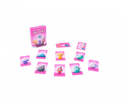 20 cartas de monstruo de doble cara, donde en un lado está la imagen de monstruo y en la otra el número de ojos, manos y patas que tiene