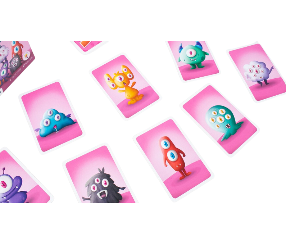 Observa tus monstruos y presta atención a la carta desafío, porque quien primero encuentre la respuesta será quien gane, ¿cuántos ojos, manos o patas tienen?