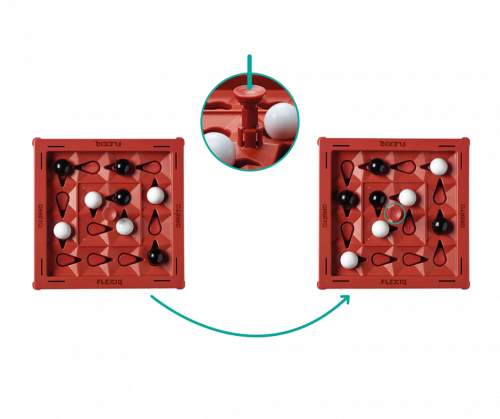 Por cierto, frustra también la estrategia de tu oponente moviendo una de sus canicas durante tu turno. ¡Atención, este elemento de juego único funciona en 2 direcciones!