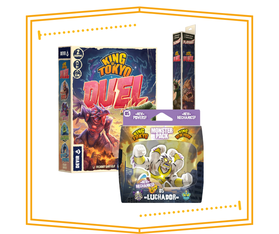 Este pack es una oportunidad única para tener la experiencia completa de King of Tokyo Duel, potenciada con el estilo y la mecánica del Luchador. Ideal para 2 jugadores (pero Luchador se integra con la saga King of Tokyo / New York para más jugadores).