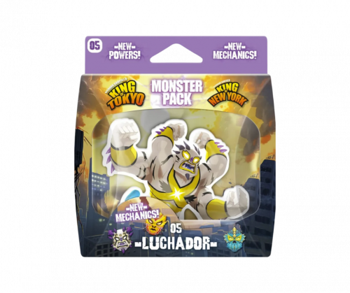 Este pack añade nuevas reglas, más drama y una buena dosis de suplex cósmico a tus partidas de King of Tokyo (o New York). Es perfecto para quienes creen que destruir ciudades está bien… ¡pero hacerlo con una llave voladora y una máscara brillante está mucho mejor! Puedes combinarlo con otras expansiones o jugarlo por separado.