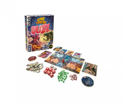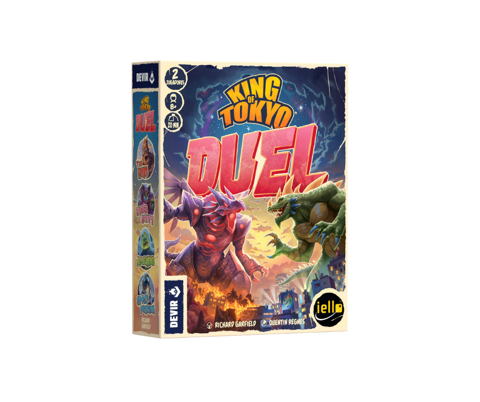 Elige entre 6 monstruos únicos, cada uno con sus propios poderes. Tu objetivo es claro: machacar a tu rival hasta la aniquilación o inspirar tal terror que la multitud te corone Rey de Tokio. Lanza los dados hasta 3 veces, gestiona tu energía, compra cartas de poder y decide si atacas sin piedad, te curas desesperadamente o avanzas por las pistas de fama y destrucción. King of Tokyo: Duel es fácil de aprender, pero esconde una profundidad táctica que te hará sudar en cada turno. ¡Cada partida será un reto distinto y un duelo de voluntades!