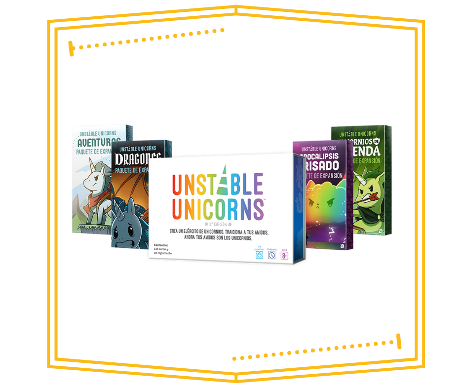 Sumérgete en un mundo de magia y caos con nuestras irresistibles ofertas en juegos de mesa. “Unstable Unicorns” y sus expansiones te invitan a vivir una experiencia única llena de risas y estrategia.