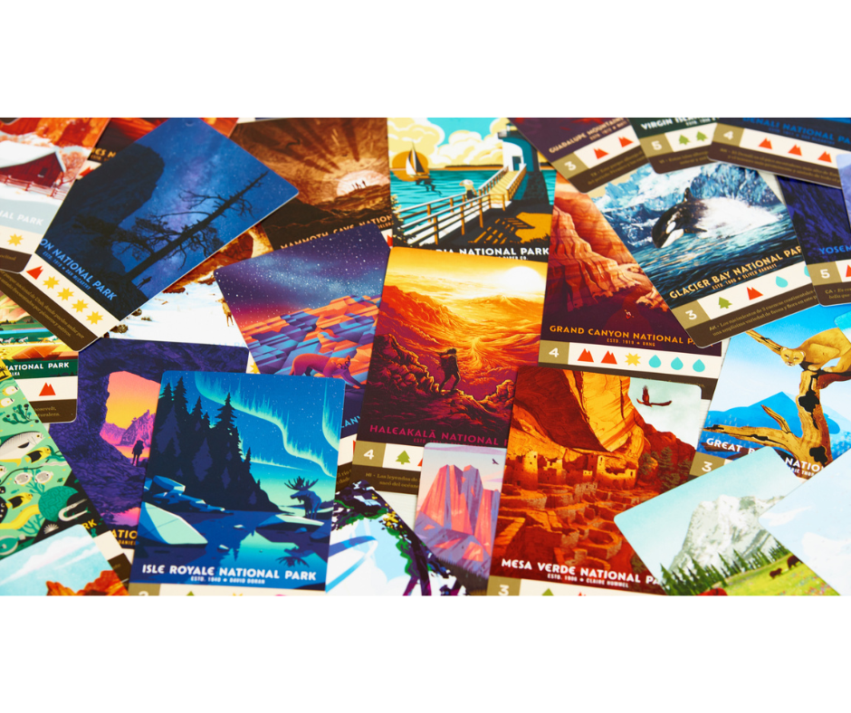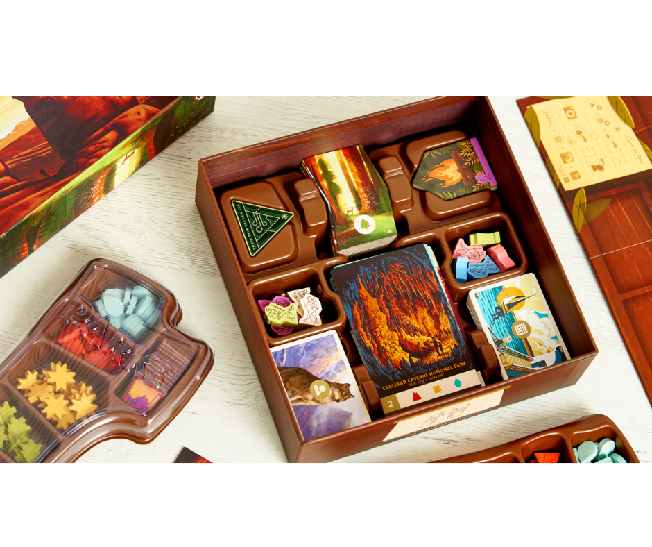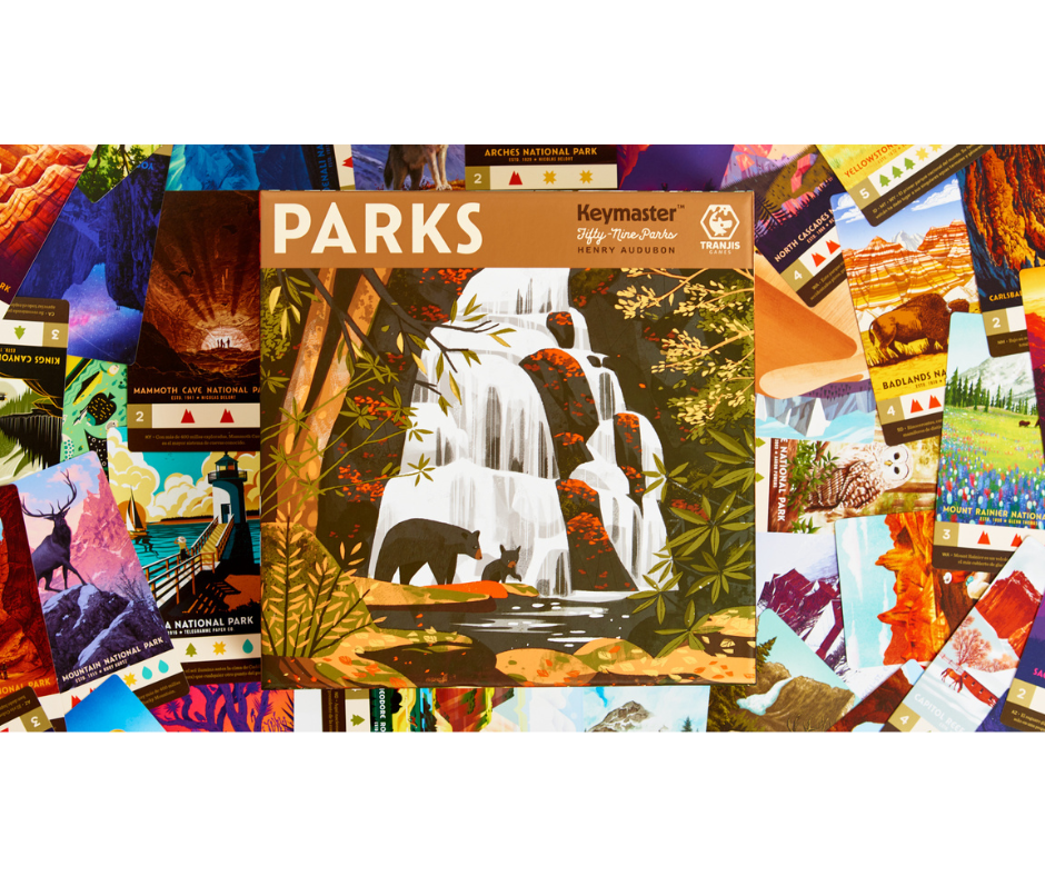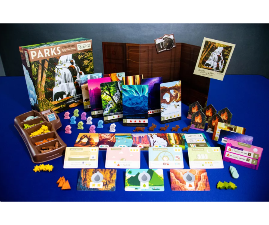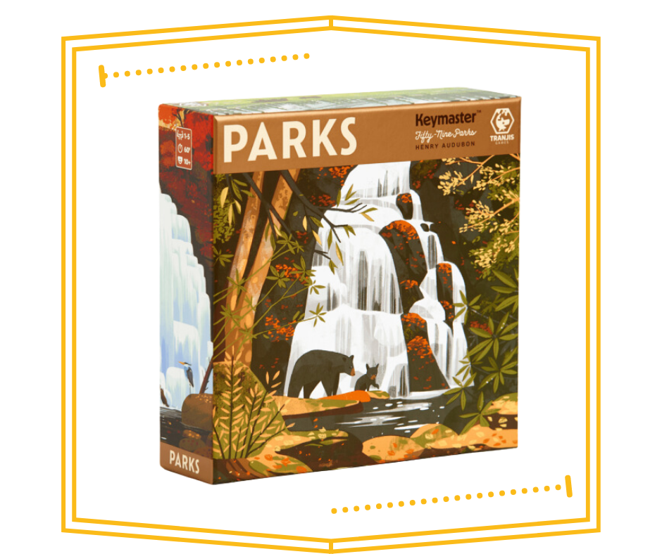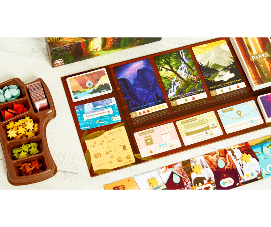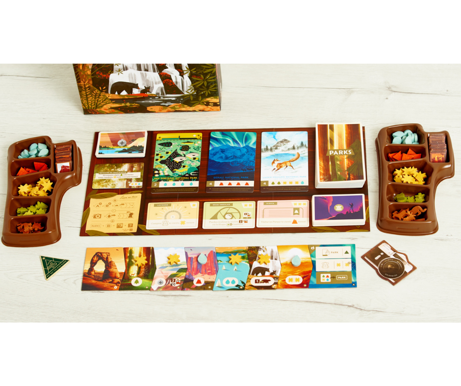 Parks es un juego de corte familiar en el que las personas representan a excursionistas que visitarán distintos parques nacionales. A lo largo de cuatro rondas, cada persona gestionará dos peones que se desplazarán sobre un track de casillas.