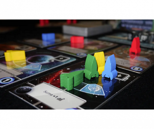 Cada jugador dispone de un tablero personal que es el corazón de su imperio. Aquí llevarás la cuenta de tus reservas de energía, tus puntos de cultura y, crucialmente, el nivel de tu imperio. Este tablero es también la base de tu flota estelar, desde donde partirán tus naves para conquistar planetas inexplorados que se revelan del mazo común en el centro de la mesa.