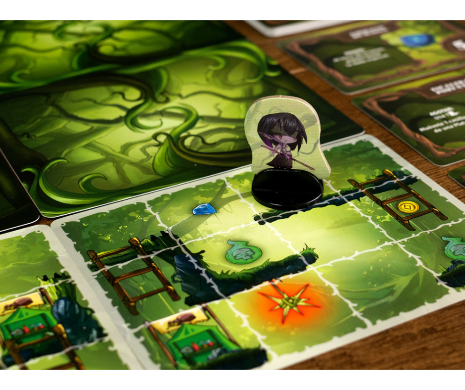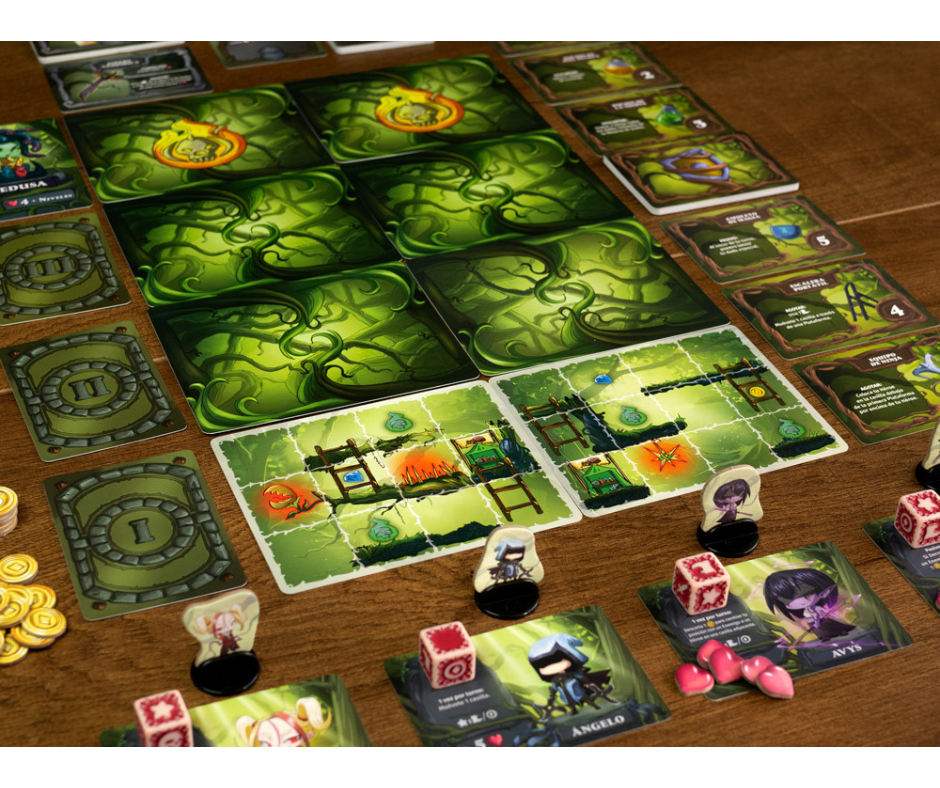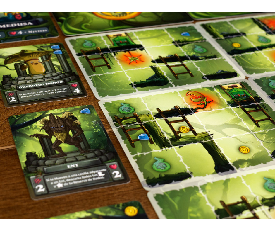 No hay un único mapa grande en la caja. A partir de las cartas, creas un nuevo mapa en cada partida. Además, el mapa tiene muchos niveles y, desde el principio, solo ves uno de ellos.