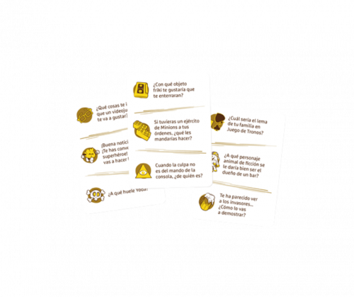 Elige tu Dilema Friki: Cada tarjeta ofrece tres preguntas diferentes. El jugador activo elige una de ellas y la lee en voz alta al grupo.