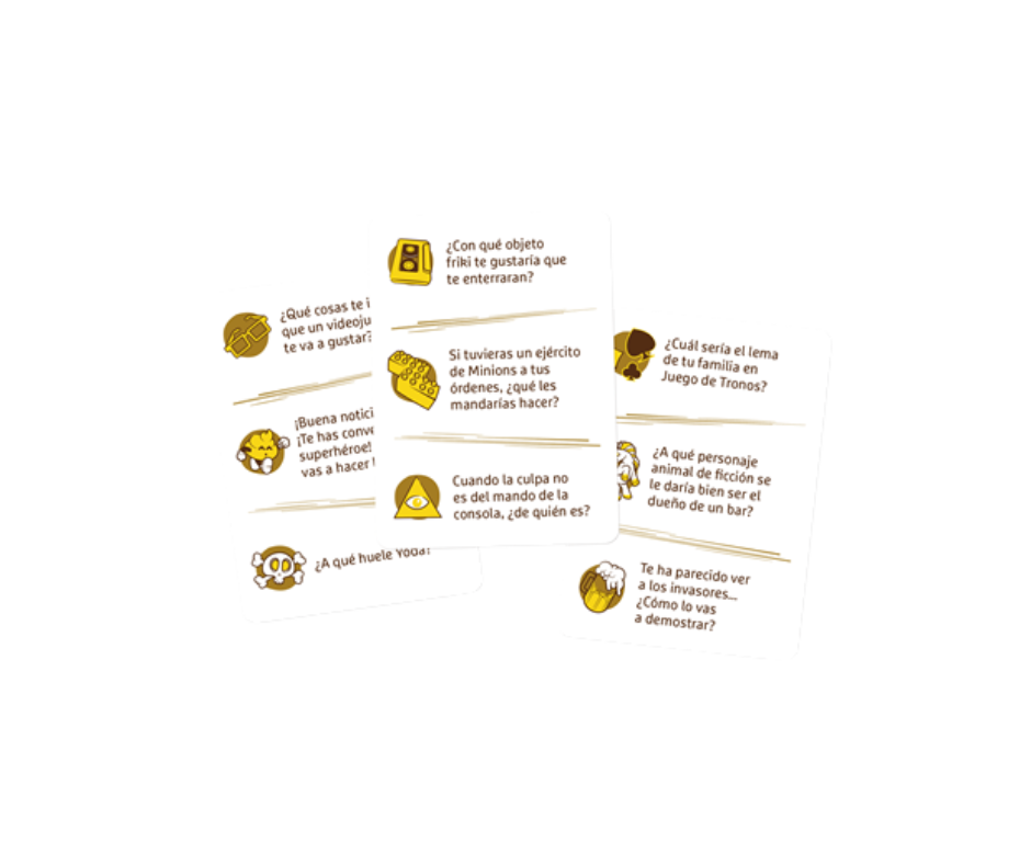 ¿Estás preparado para hacer¡Preguntas de Mierda Friki! 🤓 Juego de cartas para geeks. Preguntas absurdas, respuestas ingeniosas. ¡Humor, risas y debates frikis garantizados! el ridículo, usar el humor y una pizca de sinceridad para conquistar las preguntas más frikis del universo? ¡Que la Fuerza (y las respuestas ingeniosas) te acompañen!