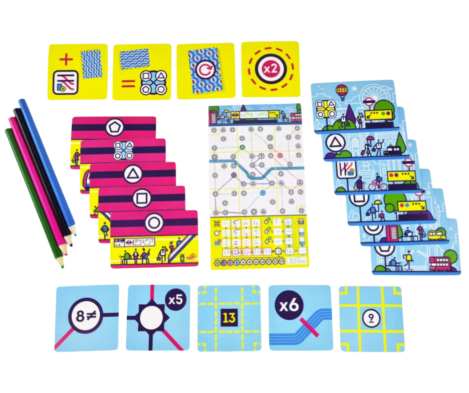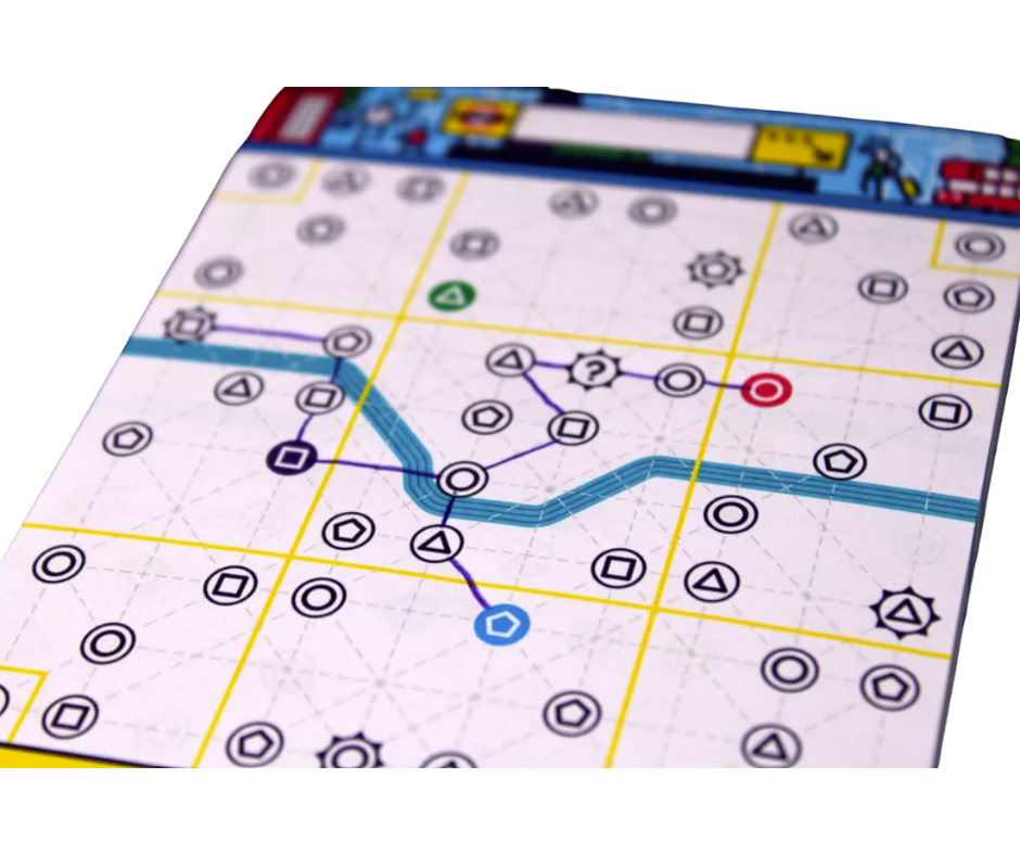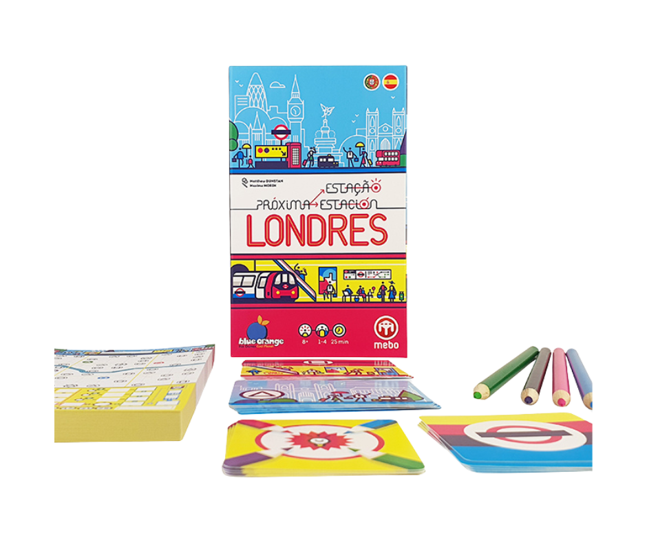 ¡La ciudad de Londres te necesita! En Próxima Estación Londres asumirás el rol de gerente de proyectos encargado de reinventar la red de metro más antigua del mundo. Inspirado en los clásicos juegos de lápiz y papel, este juego te reta a dibujar rutas en una hoja dividida en 9 distritos, donde el majestuoso Támesis atraviesa la ciudad. Cada turno, revelas una carta de Estación con un símbolo que deberás conectar en el tablero, creando líneas que no se crucen y aprovechando cada oportunidad para ganar puntos.