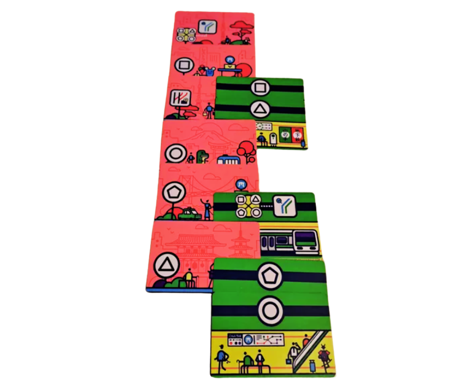 Sumérgete en el vibrante mundo del metro de Tokio con Próxima Estación: Tokyo, un juego de tablero para 1 a 4 jugadores que te reta a rediseñar la red de transporte de la capital japonesa. En cada turno, revelas una nueva tarjeta de estación y dibujas una línea en tu mapa personal, eligiendo estratégicamente la mejor ruta para conectarte con la línea verde central y recolectar sellos que te otorguen puntos cruciales.