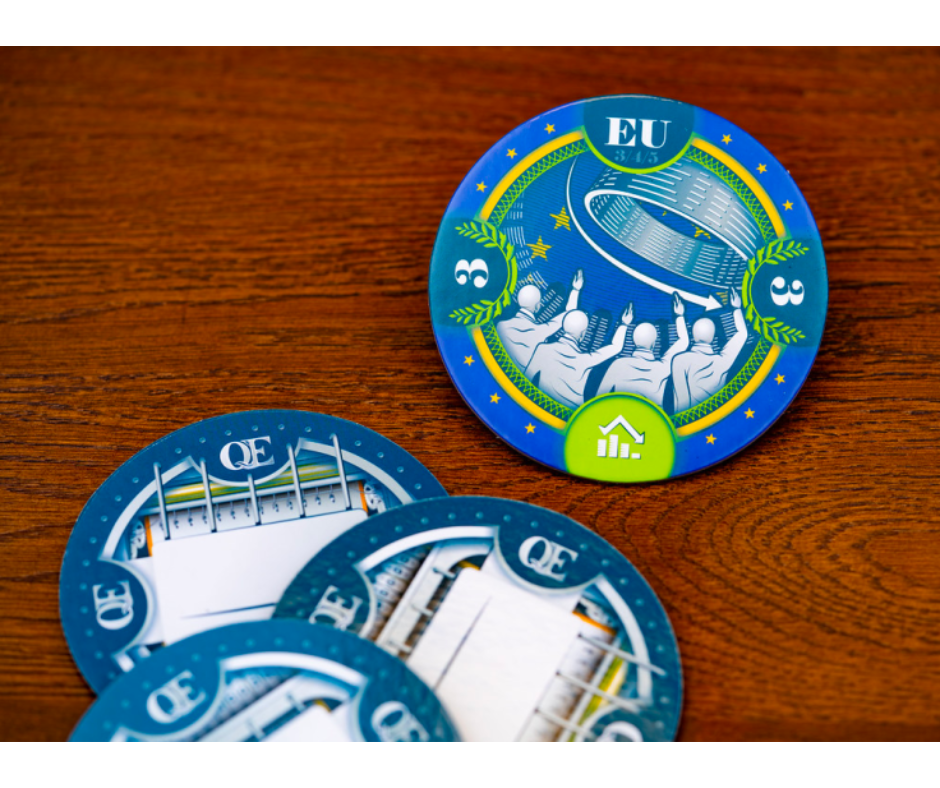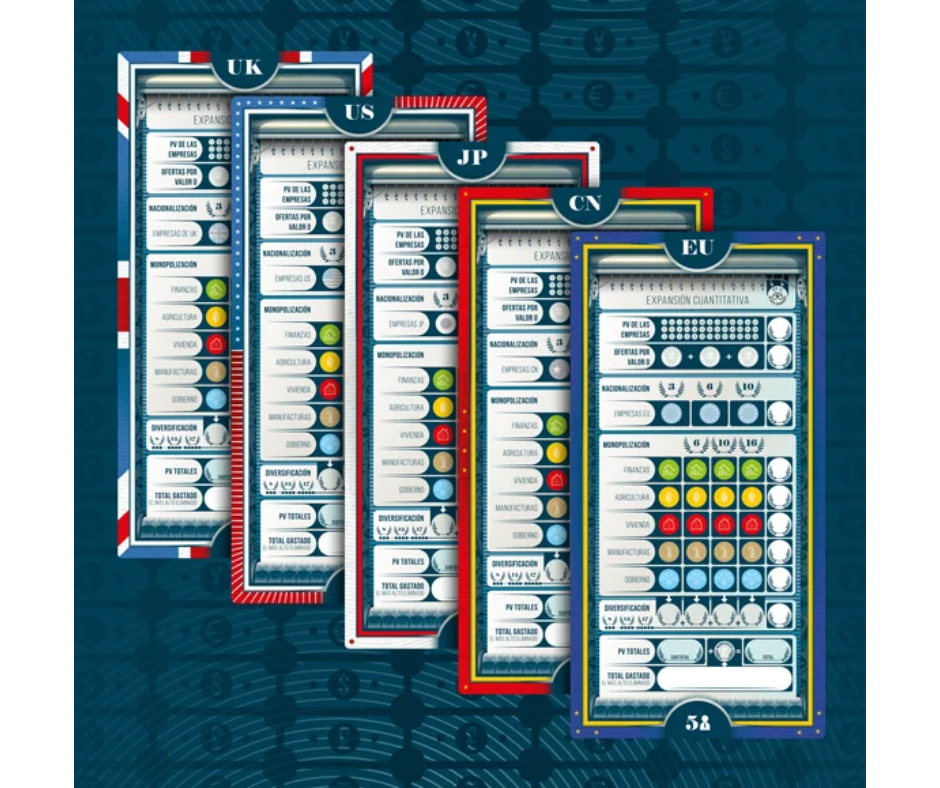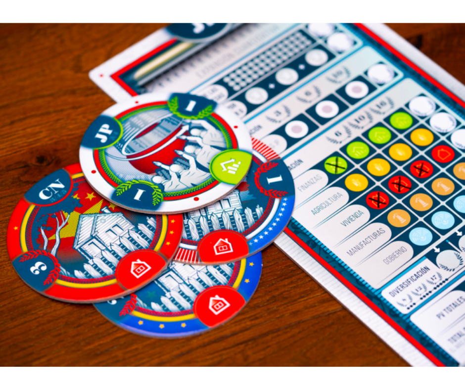 Consigue empresas para sumar puntos, pero ten cuidado: si eres el país que más ha gastado durante la partida, serás eliminado.¡ Asegúrate de controlar la evolución dela inflación!