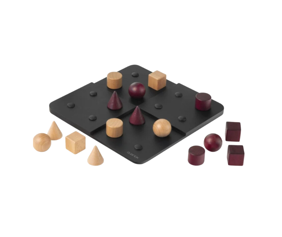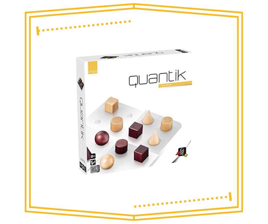 Quantik es un juego de estrategia puramente abstracto. El objetivo es ser el primer jugador en plantear la cuarta forma distinta de una línea, una columna o una zona cuadrada.