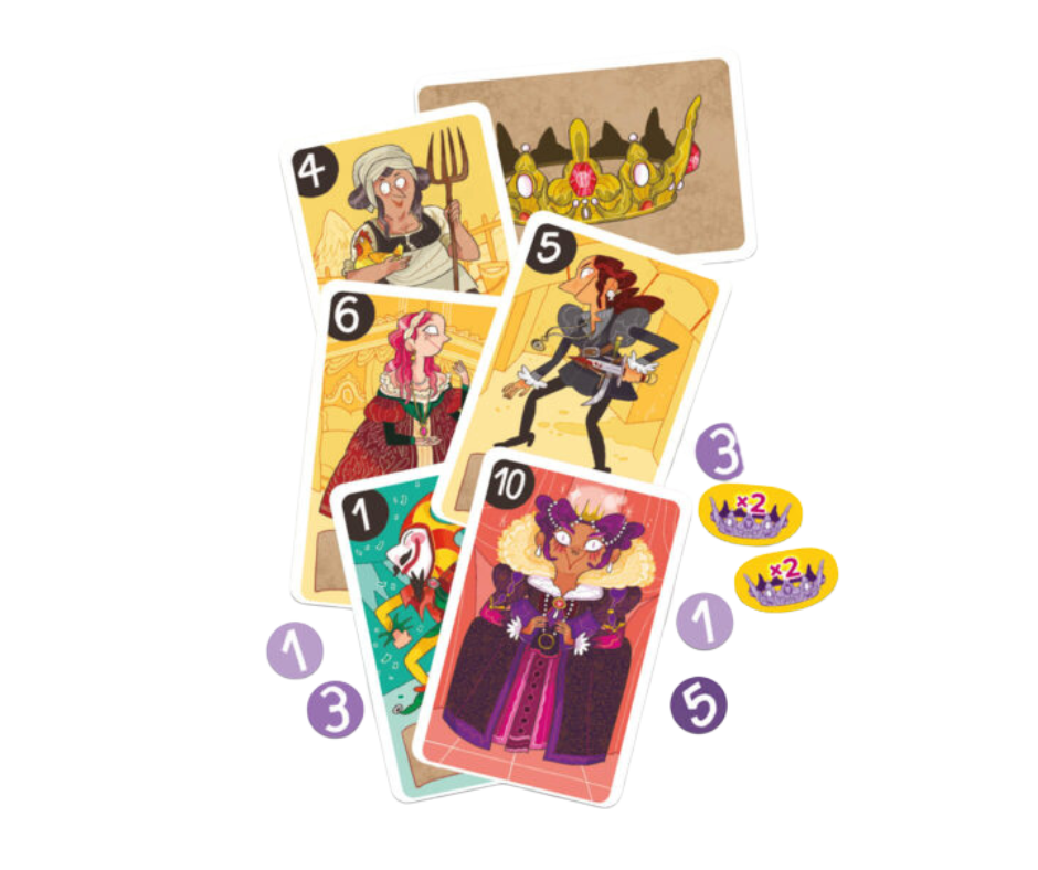 Por turnos, cada jugador puede hacer 3 acciones, una sola vez, en el orden que prefiera. La primera consiste en cambiar las cartas que quieran de su mano por cartas del mazo central o bien anunciar “No hay cambios”, cosa que bloquea la opción de cambiar cartas para el resto de jugadores. La segunda acción es jugar una carta de la mano para formar su combinación. Se puede hacer boca abajo o boca arriba. En caso de hacerlo boca arriba, se aplica inmediatamente el efecto de la carta. El bufón, por ejemplo, permite que todo el mundo pueda volver a cambiar cartas con el mazo central; la campesina obliga a otro jugador a escoger una carta de su mano y bajarla boca arriba aplicando su efecto; la asesina elimina una carta que esté sobre la mesa; la cortesana obliga a girar una carta que esté boca abajo; el trompetista permite mirar el mazo central y el caballero fuerza a otro jugador a sustituir una carta de su mano.