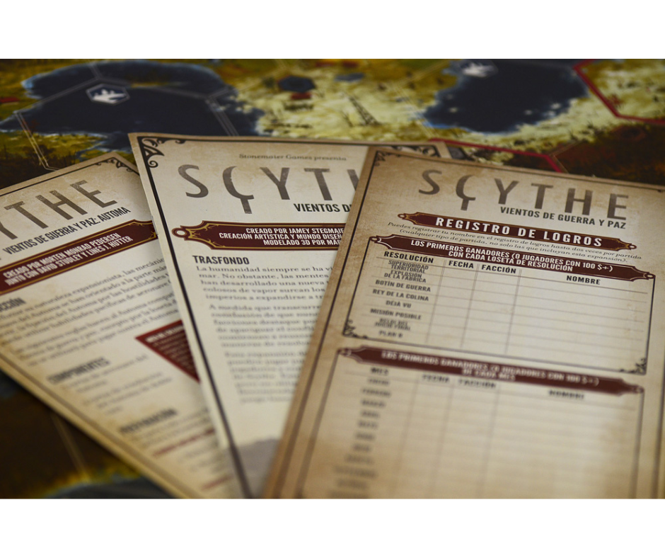 Ambientado en una realidad paralela de 1920, Scythe es un juego de estrategia tipo 4x para 1 a 5 jugadores (ampliado a 7 en esta expansión). En un tiempo de granjas y guerras, cada jugador representa un personaje de una de cinco facciones de Europa del este, que están intentando conseguir fortuna y reclamar su posición en la tierra que rodea la misteriosa “Fábrica”.