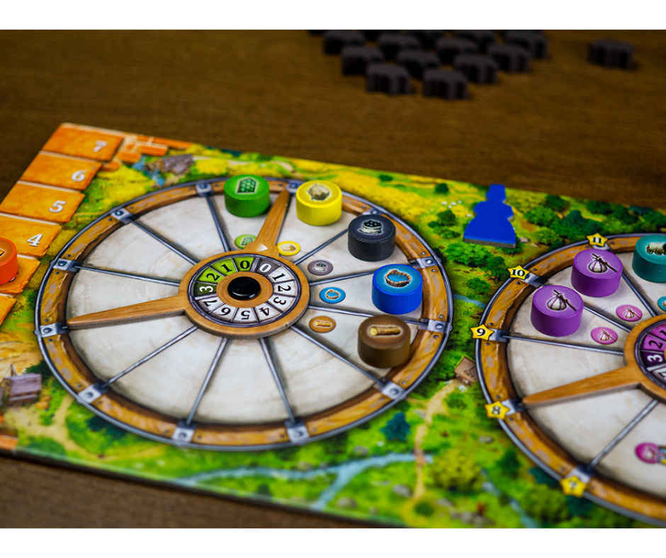 Gestiona la Rueda: Mantén el equilibrio perfecto de recursos en tu tablero para que la rueda gire y te dé materiales valiosos sin quedarte a cero.