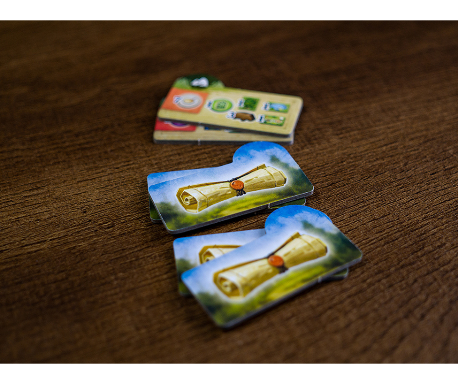 La Magia de las Ruedas de Recursos: Esto es ingeniería lúdica pura. Tienes dos ruedas en tu tablero personal. A medida que consigues materiales básicos (madera, agua, arena), la rueda gira automáticamente para transformarlos en recursos avanzados como el codiciado vidrio o el ladrillo. Es un sistema elegantísimo que te obliga a planificar tus recolecciones con precisión de relojero para no desperdiciar nada.