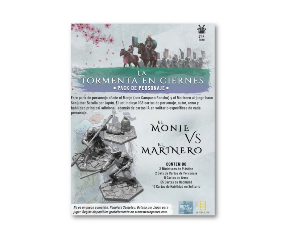 Este Pack incluye dos personajes, El Monje y El Marinero al juego Senjutsu. Este set incluye 108 cartar de personaje, autor, arma y habilidad principal adicional, además de cartas IA específicas para cada personaje en modo solitario.