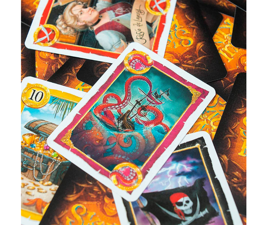 Cartas de Botín: Premios extra para quien las juega y para quien gana la baza, añadiendo más formas de sumar puntos.Modo Avanzado y Poderes de Pirata: Para los verdaderos lobos de mar, esta edición incluye un modo avanzado con nuevas formas de puntuación y poderes únicos para las cartas de Pirata, pequeños modificadores que pueden tener consecuencias enormes e imprevisibles.