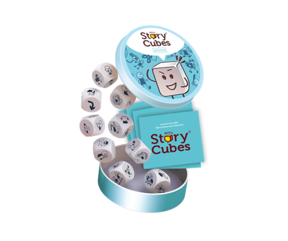 Story Cubes Acciones es un juego enormemente divertido, que agudiza tu ingenio y afina tu imaginación. Se pueden utilizar para llegar a respuestas o decisiones de una manera indirecta e ingeniosa. Cada dado tiene 6 imágenes o iconos, un total de 54 ideas que mezcladas pueden generar más de 10 millones de combinaciones.
