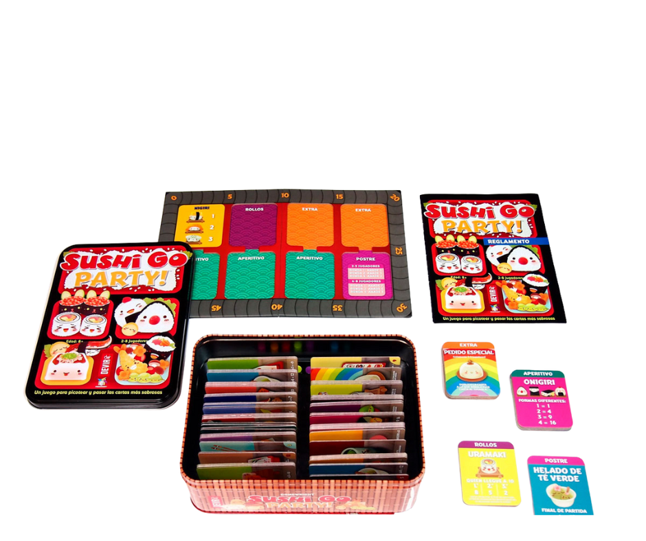 Esta versión incluye el juego básico y muchos más platos. Ahora podrás reunir hasta 8 comensales alrededor de la mesa y disfrutar de un tablero con el cual podrás ir contando tus puntos ronda a ronda.