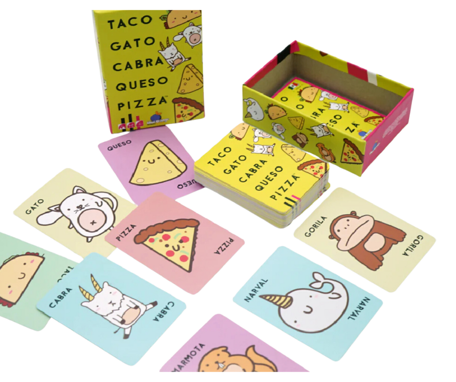 Perfecto para jugar en familia o con amigos, Taco, Gato, Cabra, Queso, Pizza es un juego de velocidad que pondrá a prueba tu memoria mientras intentas mantener la calma y elegir el momento correcto para dar tu manotazo. ¡Pero cuidado! Debes prestar mucha atención, o podrías perderlo todo. Es el juego ideal para disfrutar en todas las edades.