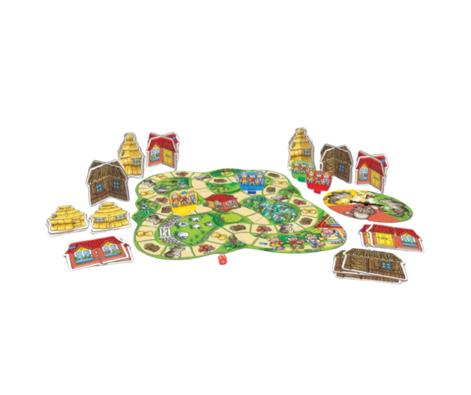 Con reglas sencillas, una dinámica rápida y el emocionante giro del “lobo soplador”, Three Little Pigs fomenta el juego en grupo, los turnos y la toma de decisiones.