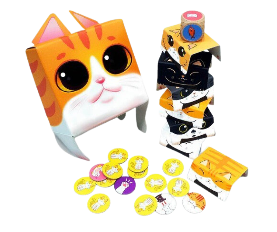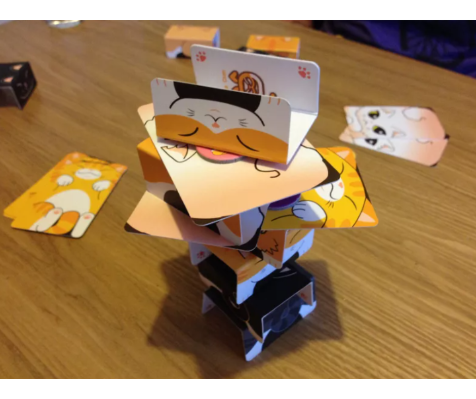 Torre de Gatos es un juego de habilidad a partir de tan solo 4 años en el que se deben colocar unas cartas de gatos dobladas formando pequeñas cajas. Ganará la primera persona en deshacerse de su mano de cartas de gato.