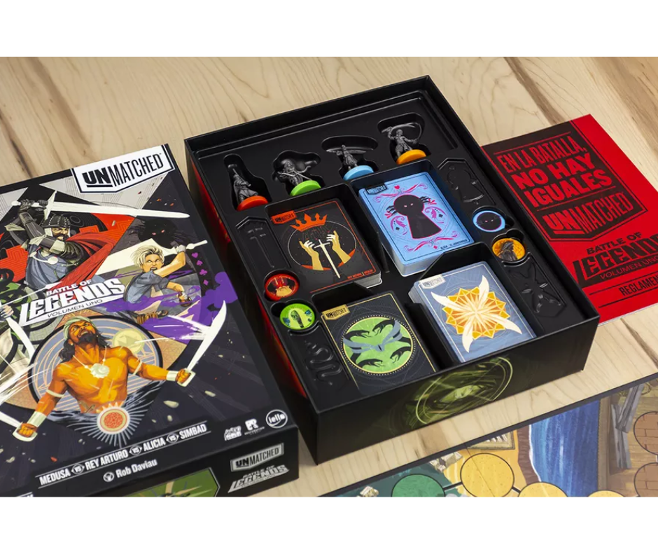 Unmatched es un juego de lucha en miniatura muy asimétrico para dos o cuatro jugadores. Cada héroe está representado por un mazo único diseñado para evocar su estilo y leyenda. El movimiento táctico y la resolución de combates sin suerte crean una experiencia de juego única que recompensa la experiencia, pero justo cuando dominas un conjunto, llegan nuevos héroes para proporcionar nuevos enfrentamientos.