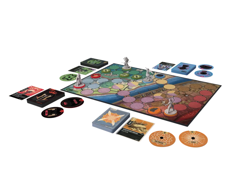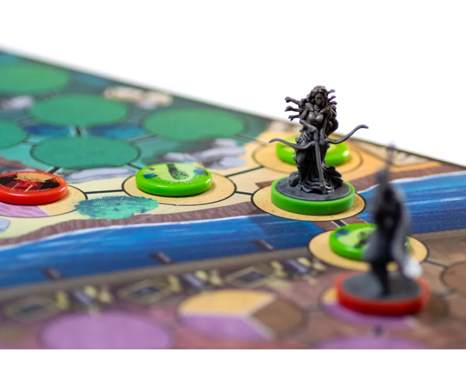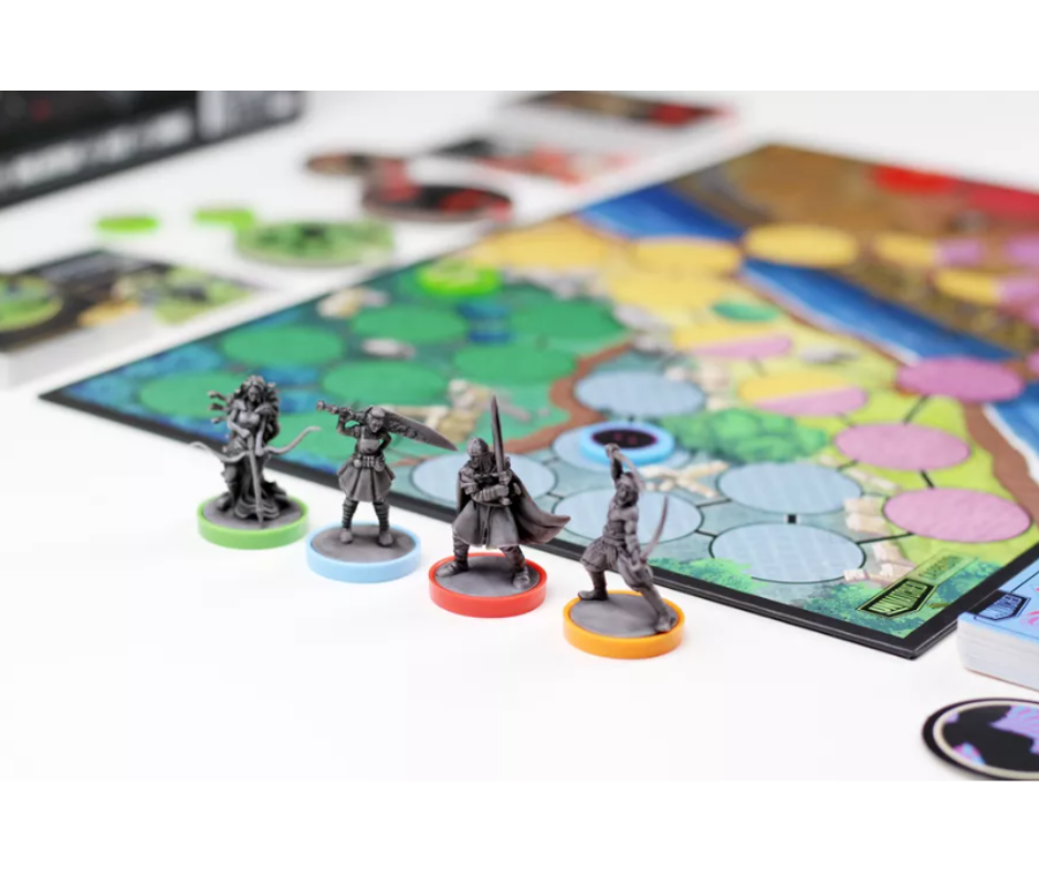 El juego incluye un tablero de doble cara con dos campos de batalla diferentes, miniaturas prelavadas para cada héroe y rastreadores de vida personalizados que cobran vida con las impresionantes ilustraciones de Oliver Barrett y los equipos de diseño combinados de Restoration Games y Mondo Games.