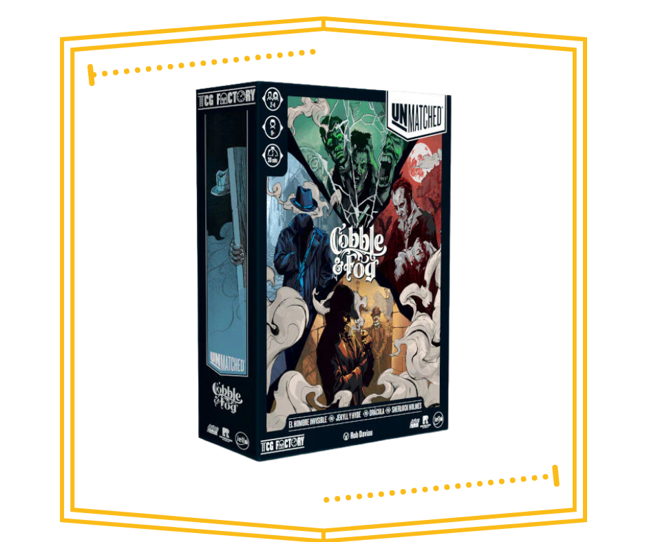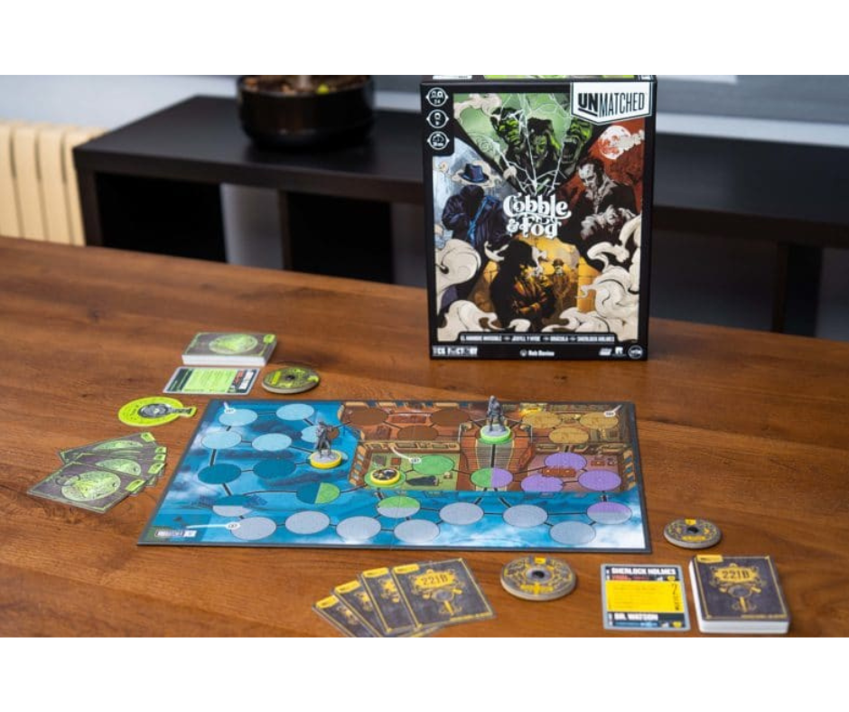 Cobble & Fog se puede jugar de manera independiente o combinándola con otras cajas de Unmatched. ¡Prueba a enfrentar a Sherlock Holmes contra Robin Hood… o a Drácula contra Alicia en el País de las Maravillas!