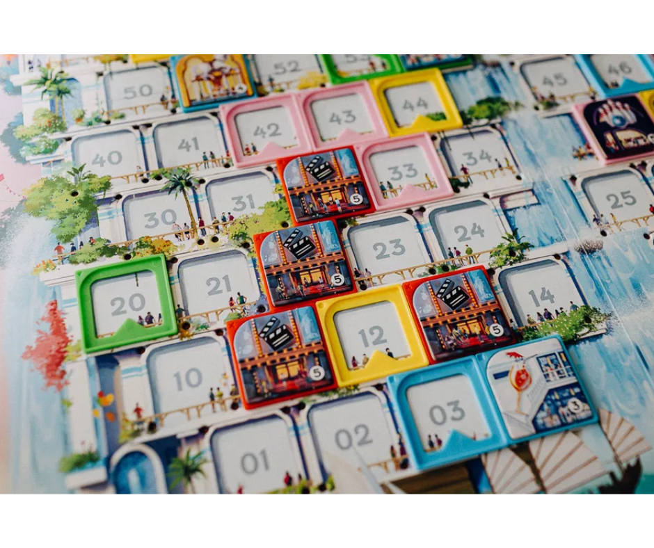 Finalmente, en la fase de Retribución, todas las atracciones que hayan construido nos harán ganar dinero. Recibiran monedas por cada una de sus atracciones y en función de su tamaño. Finalmente, muevan el marcador de ronda al siguiente espacio y barajen el mazo de cartas de Ubicación. Ya estan listos para empezar la siguiente ronda.